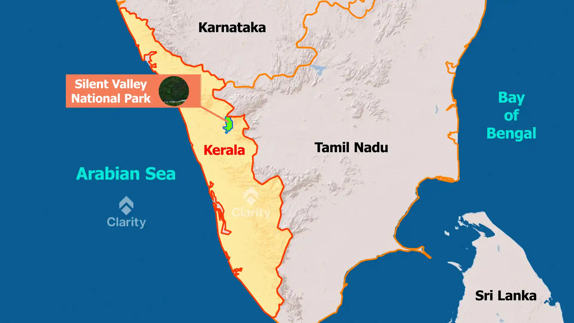 Silent Valley National Park lies in the Nilgiri Hills of Kerala and is part of the Western Ghats, a UNESCO World Heritage Site. Covering about 89.52 sq km, the park ranges from 900 m to 2,383 m in elevation and contains one of India’s last stretches of tropical evergreen forest. Its name comes from the absence of cicadas in certain areas, creating an eerie silence. The park forms the core of the Nilgiri Biosphere Reserve and was declared a national park in 1984 after a famous “Save Silent Valley” campaign stopped a dam project.