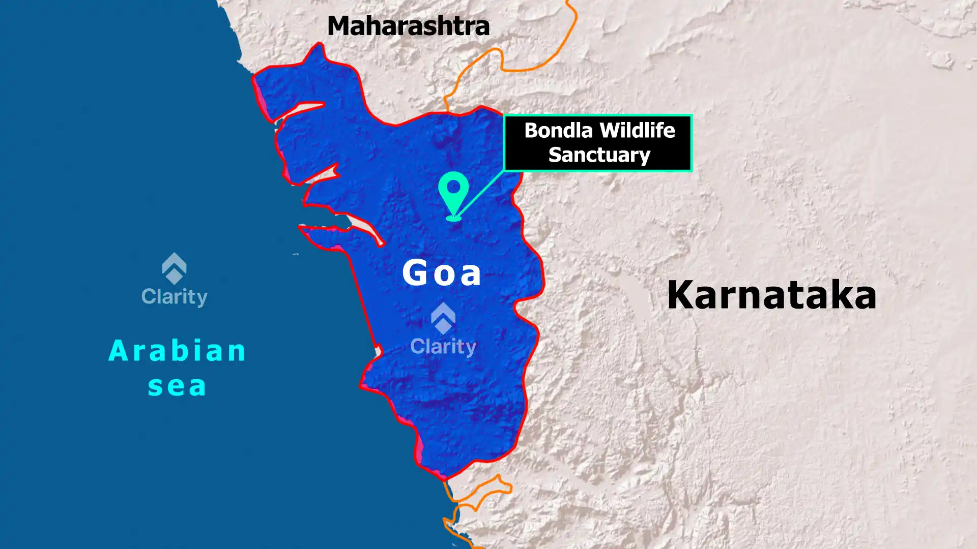 Bondla Wildlife Sanctuary lies in north-eastern Goa's foothills. Established in 1969, it covers about 8 km² and is the state's smallest protected area. Despite its size, Bondla houses Goa's only zoo, a deer park, botanical gardens and nature education centre. The forest is mainly moist deciduous with patches of semi-evergreen vegetation and supports a rich array of flora and fauna.