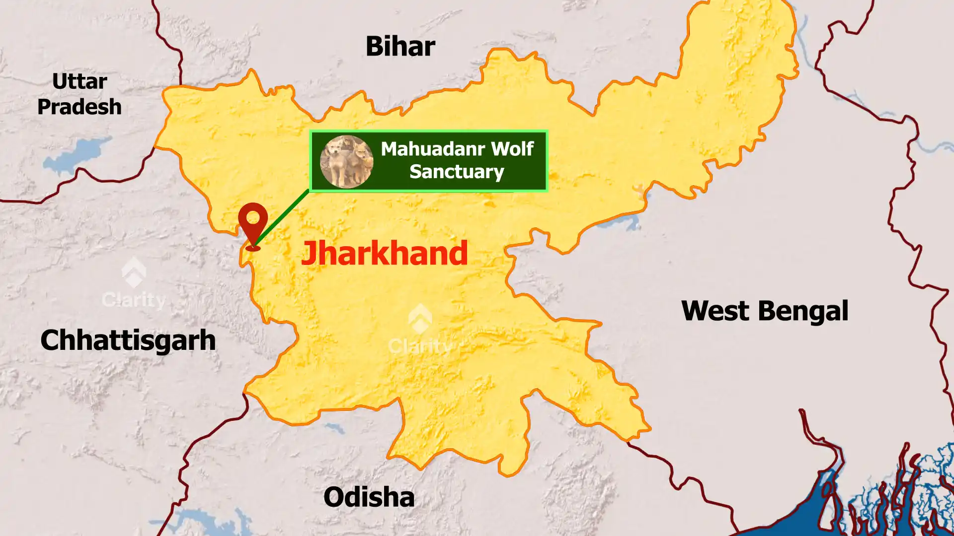 Located in Latehar district of Jharkhand, the Mahuadanr Wolf Sanctuary was notified in 1976 within the greater Palamau Tiger Reserve. Covering about 63 square kilometres of dry deciduous forest, grasslands and rocky plateaus, it provides an ideal habitat for the Indian grey wolf (Canis lupus pallipes). This subspecies once roamed across the Indian subcontinent but has declined sharply due to the conversion of grasslands into farms, persecution over livestock predation and fragmentation of territory. Wolves are apex predators and play a vital role in controlling herbivore populations and maintaining ecological balance.